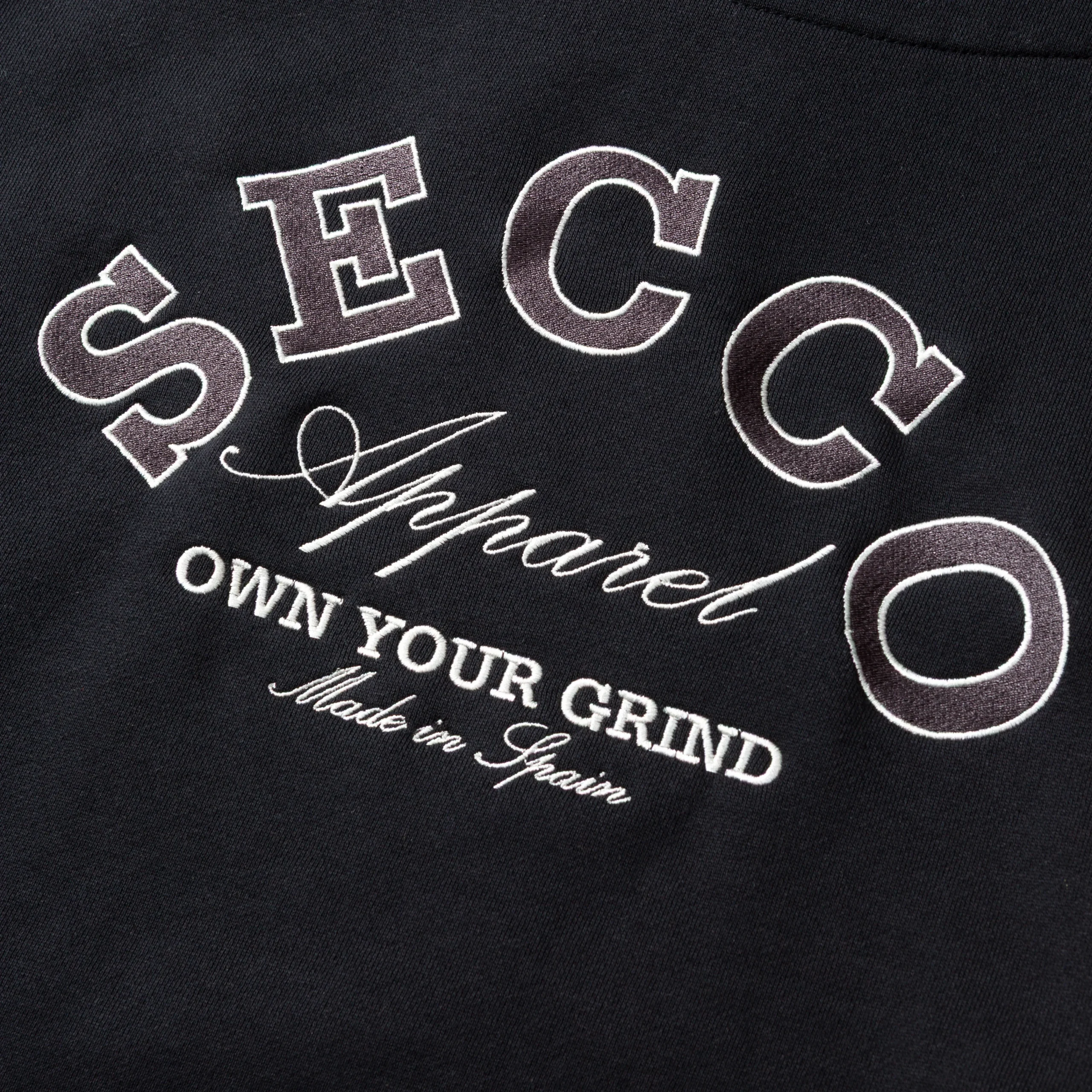 Bordado Secco en el pecho y diseño bordado en la espalda.